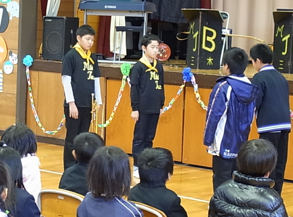 5年生に引き継ぎの言葉をいい、5年生も頑張ることを誓いました。