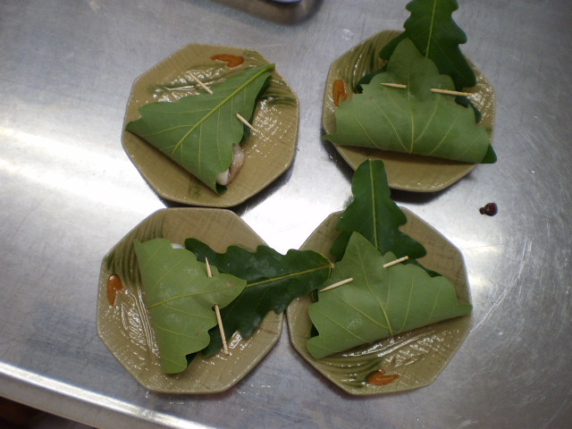 緑色の柏の葉っぱが、とてもきれいで食べるのがもったいないくらいでした。