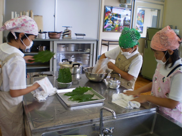 3年生が、校庭にある柏のきの葉っぱを使って柏餅を作りました。総合的な学習で