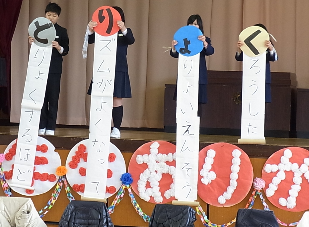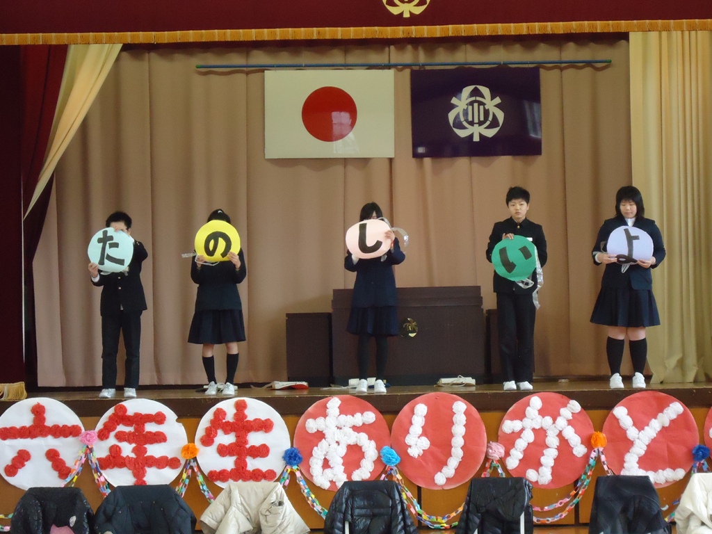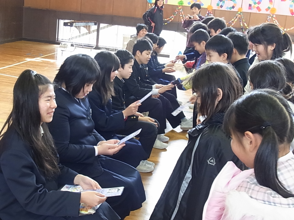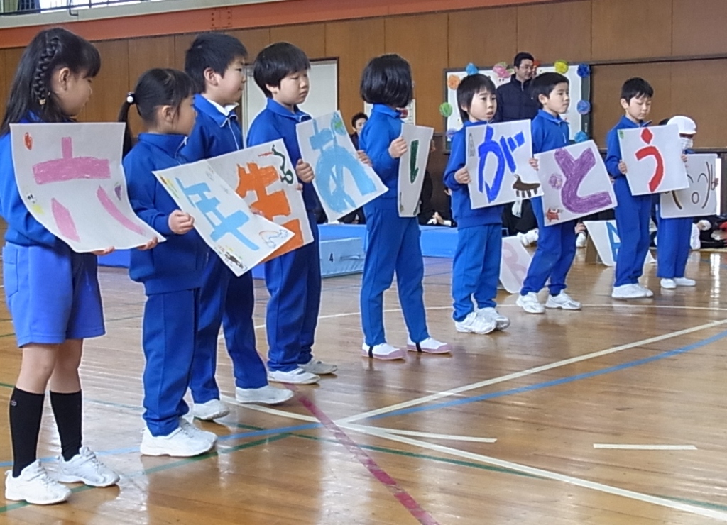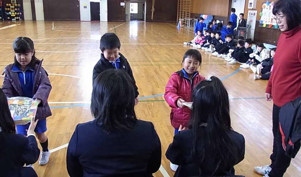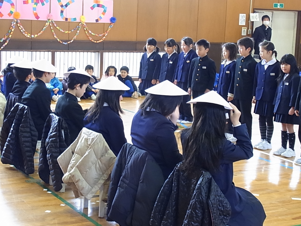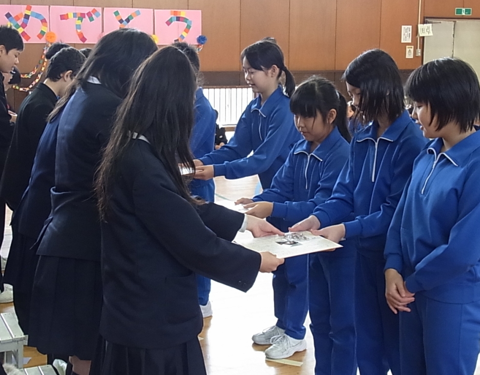 学年ごとに、ゲームや踊り歌などを披露したり、心を込めたプレゼントを渡したりしてもうすぐ卒業する6年生とお別れの会をしました。6年生は、笑顔の中にも、ちょっぴりさみしい気持ちの表情でみんなからの祝福を感謝していました。