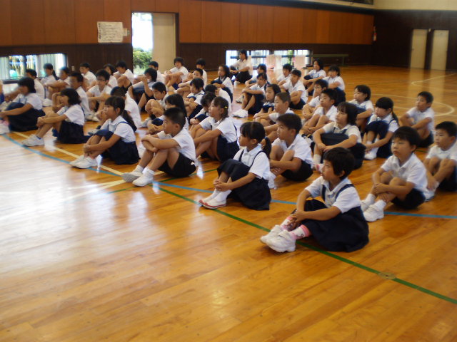 今日は、低学年の登校日でした。たくさんの宿題をやまのように抱えて、みんな元気に登校してきました。地区会館の大きなスクリーンで「さよならカバくん」という空襲の中、絶食死させられた2頭のカバたちのアニメを見ました。8月6日の平和集会で見る予定でしたが、時間がなくて今日見たのです。その後、みんなでプールに入りました。ちょっと涼しい日でしたが、久しぶりのプールに歓声が沸きあがっていました。