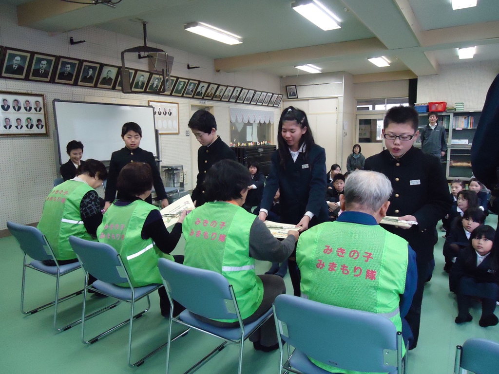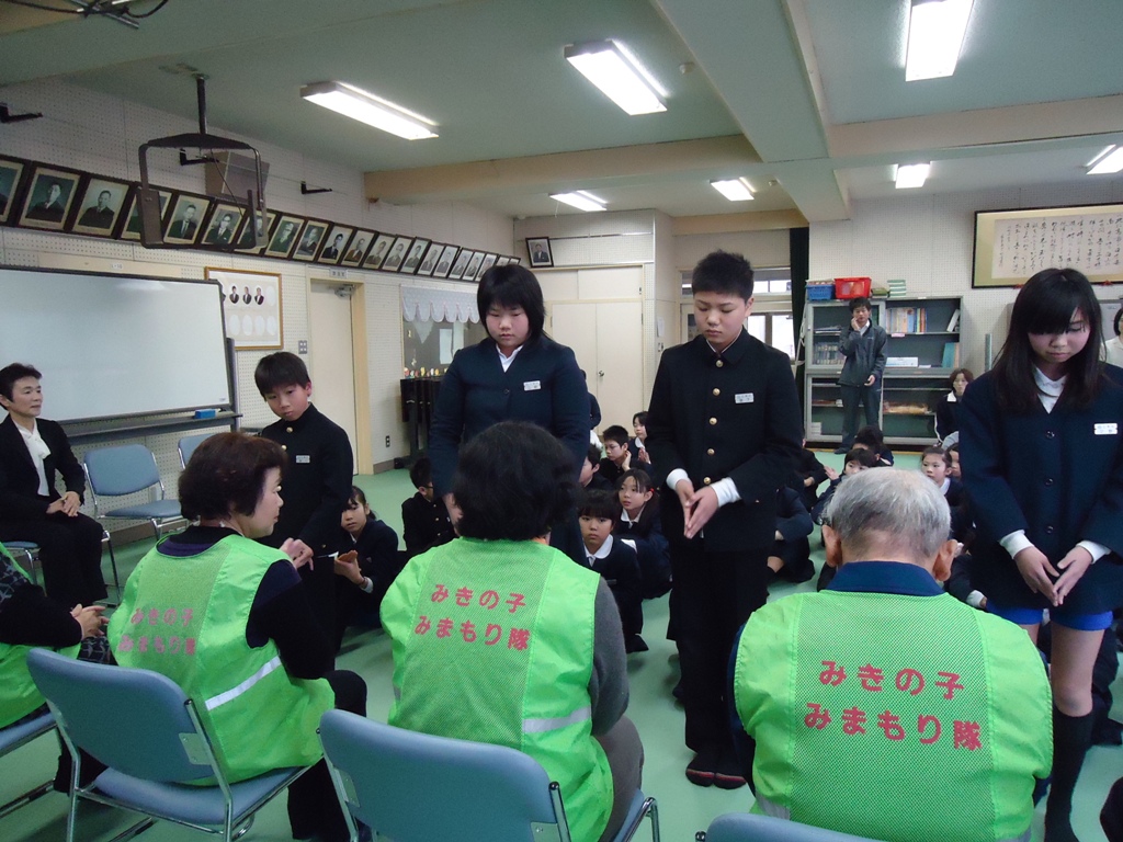 担任から、一人ひとりの通知表を見せてもらい、全員が良く頑張ったことを嬉しく思うことや、読書ノートで400冊以上読んだベスト3の子の紹介や、校報「三木の子」を1年間配達してくれた子への感謝等を伝えました。