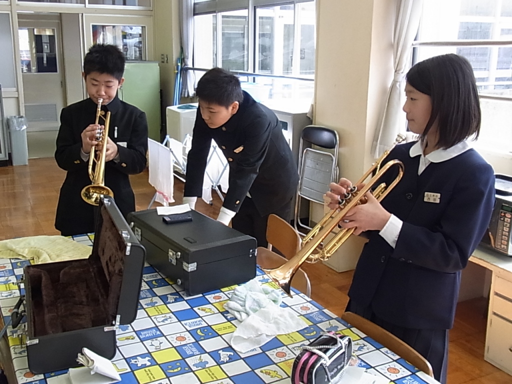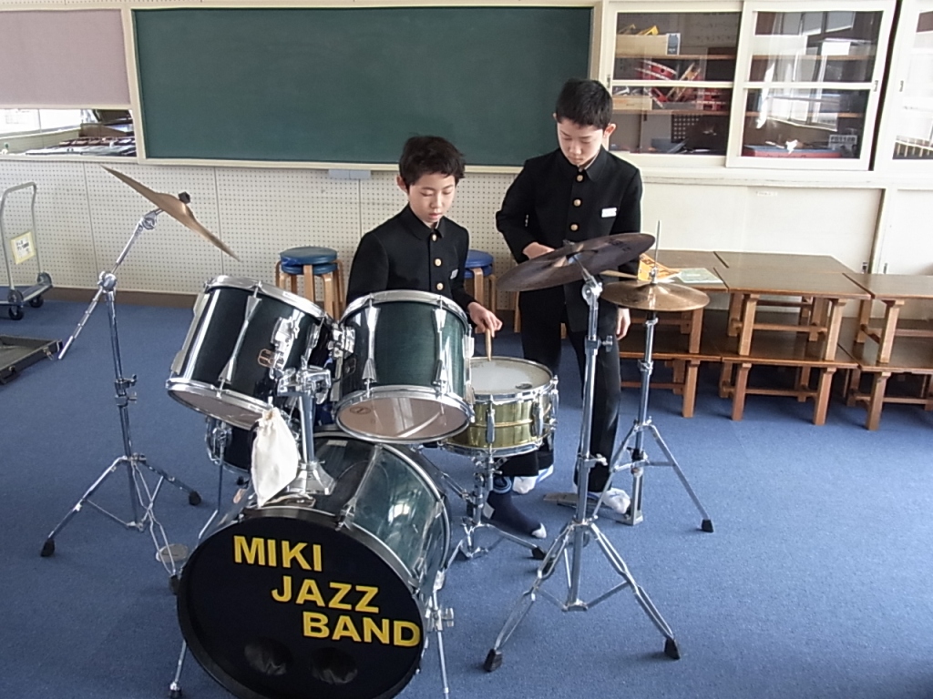 卒業式を明日に控え、6年生から5年生へ、最後のジャズ指導をしました。三木小学校の伝統を先輩から後輩へ、しっかり引き継ぎ明日は卒業していきます。
