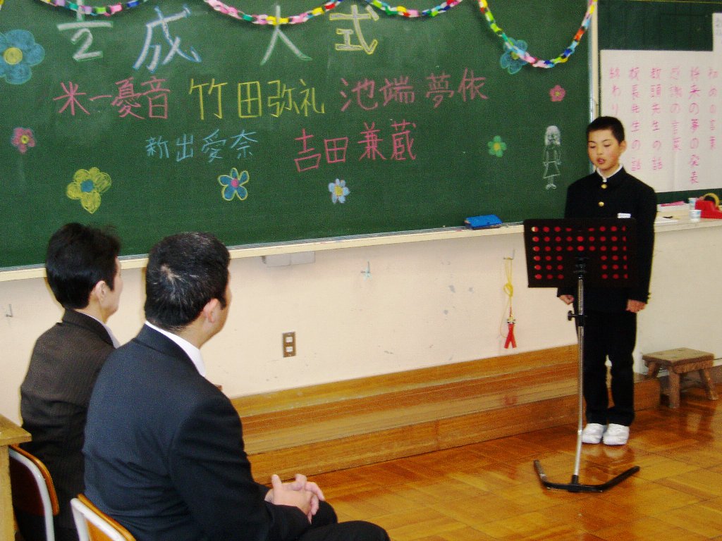 4年生は10歳です。ちょうど20歳の半分なので、「ニ分の一成人式」をしました。