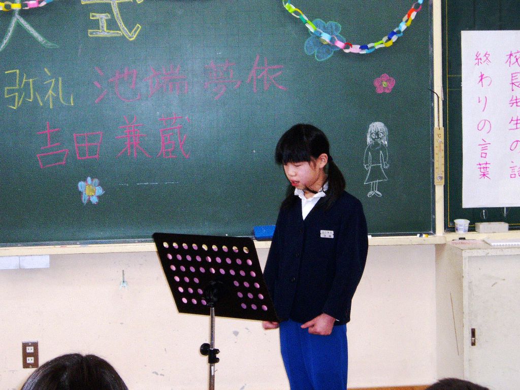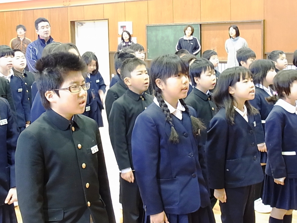 6年生が卒業していなかったので少しさみしかったですが、最後にみんなで元気よく校歌を歌って今年度を終えました。春休みは短いですが、学年のまとめをしっかりして新しい学年への準備をして欲しいと思います。