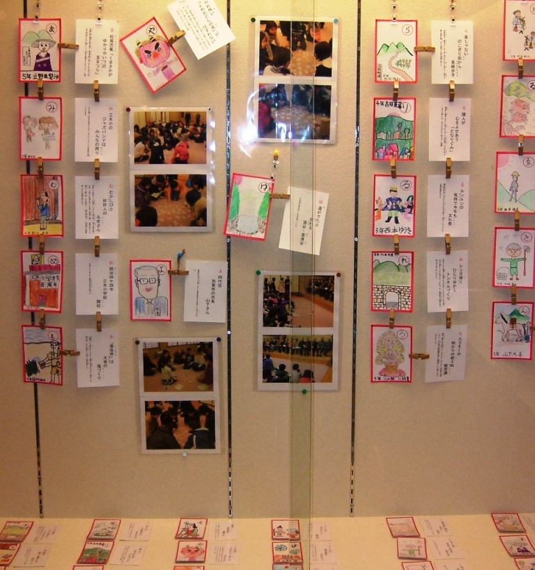 今年度は、「ふるさとカルタ」と自画像の陶板を貼った