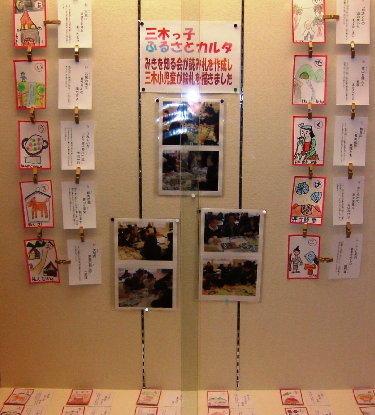 三木地区の歴史を研究する「みきを知る会」と三木小学校児童48名が作ったカルタです。是非、本を借りに行かれる時に一緒にご覧になってきてください。