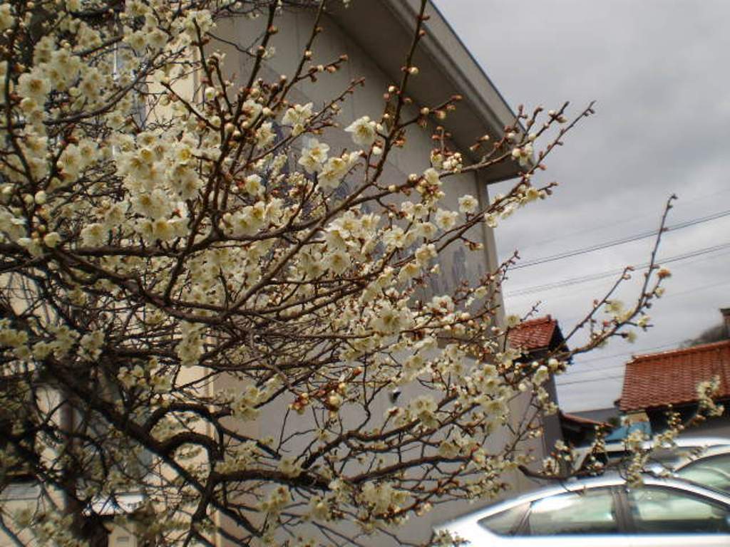 去年は卒業式に満開だった梅が、今年は気温が上がらずやっと一分咲きとなりました。この分だと入学式に桜の開花は望めないようです。