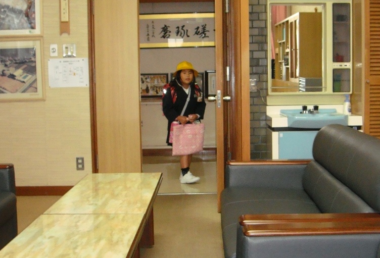 集団登校してきた児童は、靴をはき替えたら、まず職員室へ顔を見せて「おはようございます。」と全員挨拶をしてくれます。もちろん、校長室ものぞいて挨拶してくれます。登校時刻は、7:50分ぐらいなので、校長室のドアは空けておきます。「校長先生、おはようございます。」と元気な声で挨拶してくれるので、私も「●●さん、おはようございます。」と一人ずつ名前を付けて言うようにしています。名前を付けて挨拶すると自分にされたと分かりとても嬉しい顔をしてくれます。