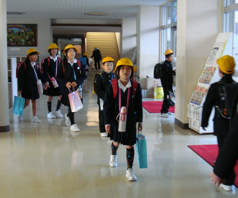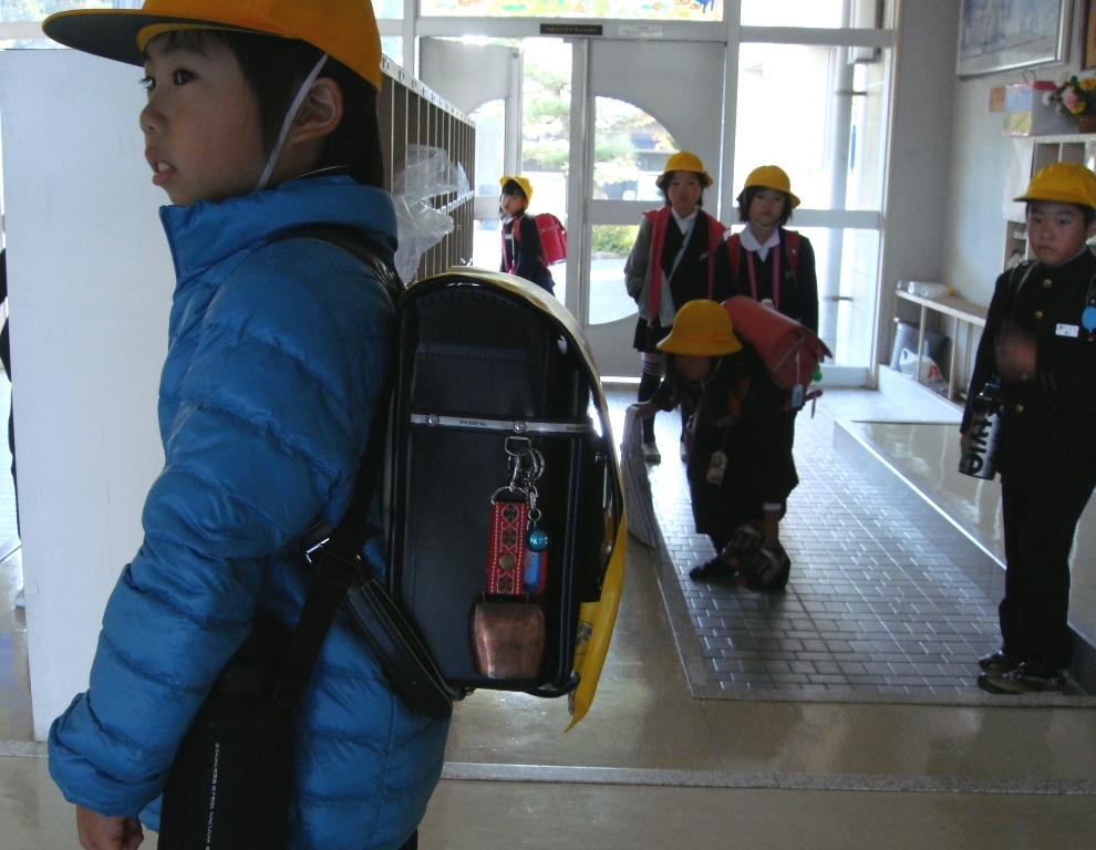 今朝も元気に登校してきた三木の子たち。最近は、「カランコロン」と大きな音が鳴り響きます。クマよけ用のベルをランドセルに付けているのです。とくに、山側の奥谷町や橘町の子がランドセルにベルを付けています。2日前、三木町の近くの大聖寺三ツ町の県道305号線、元ローソン店舗付近で大きな猿が1匹歩いていたそうです。全校児童には注意を呼び掛ける指導をしました。今年は熊はどうでしょうか。出没しないことを祈ります。