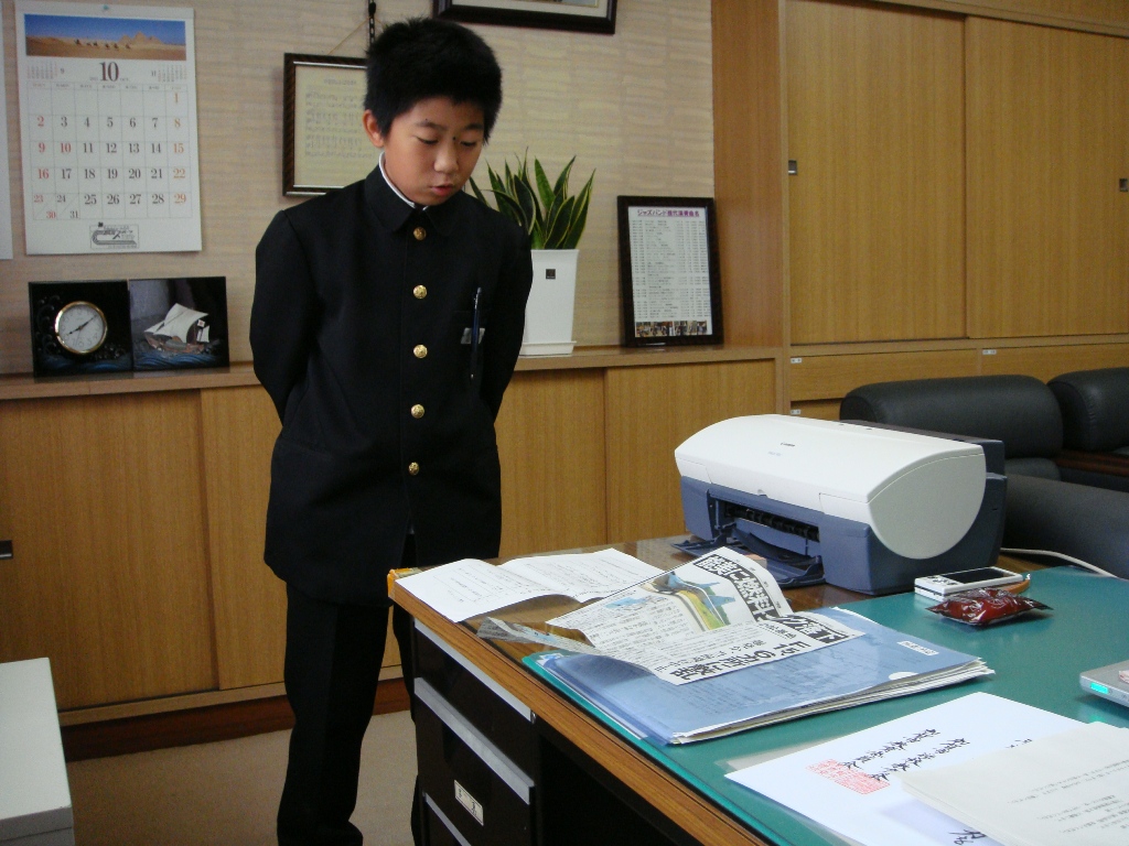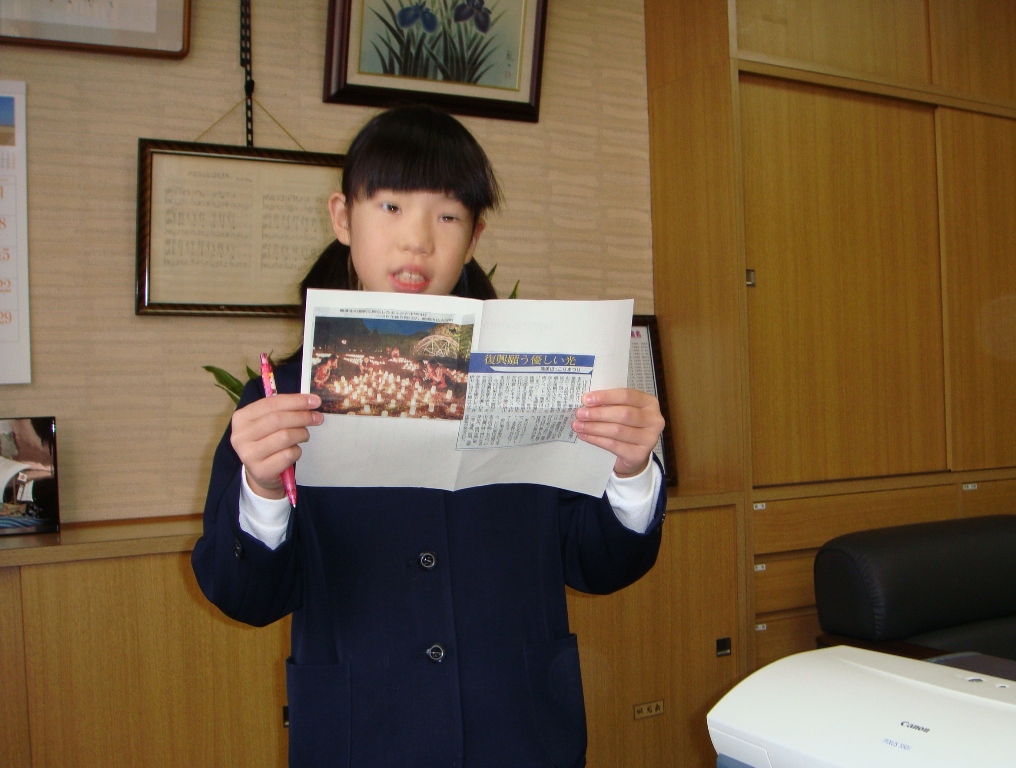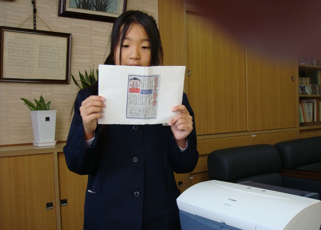 毎朝「校長先生、新聞スピーチを聞いてください。」とその日のスピーチをする子が校長室にやって来ます。教室で発表する前に校長が聞いて、もっとこうしたら良くなるとか、ここがいいねというようにアドバイスしています。