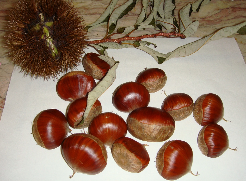展示してあった栗のイガが、開いて中から栗が顔を出しました。むいてみるとつやつやした大きな栗が現れました。通りすがりの子ども達も、おどろいて見ていました。