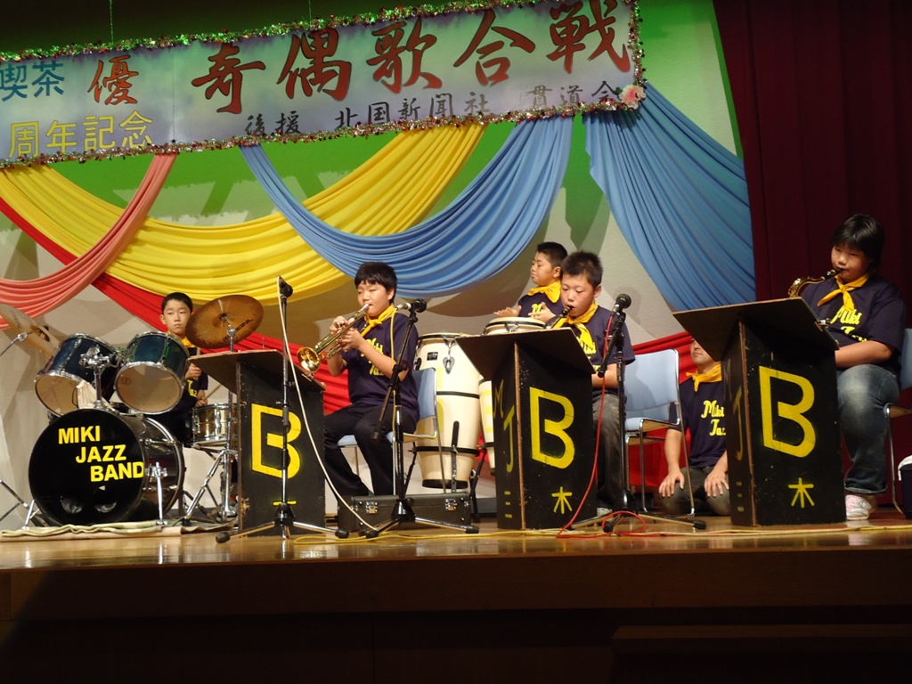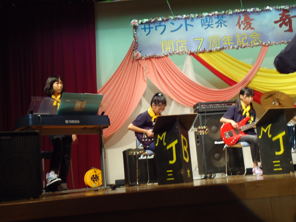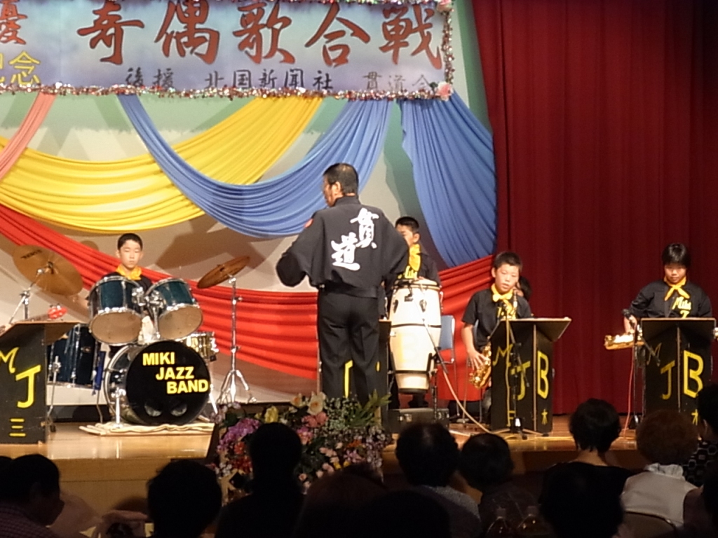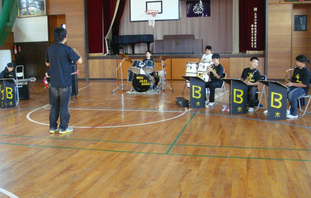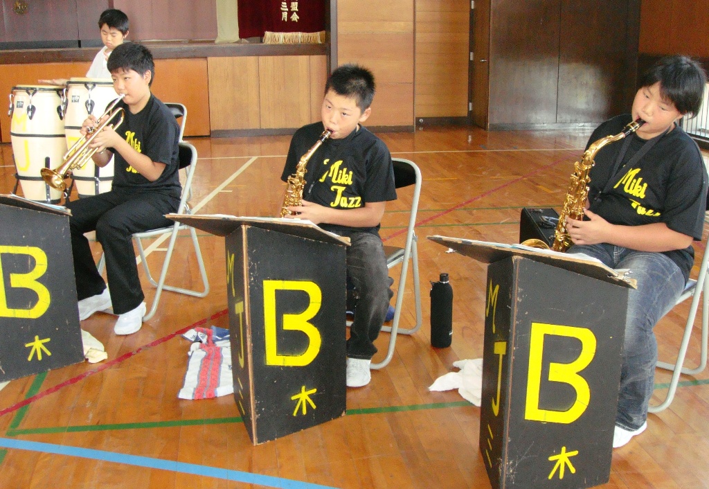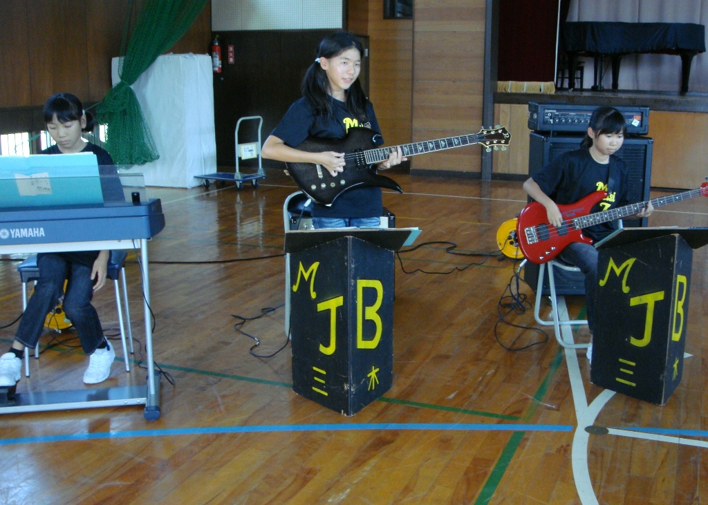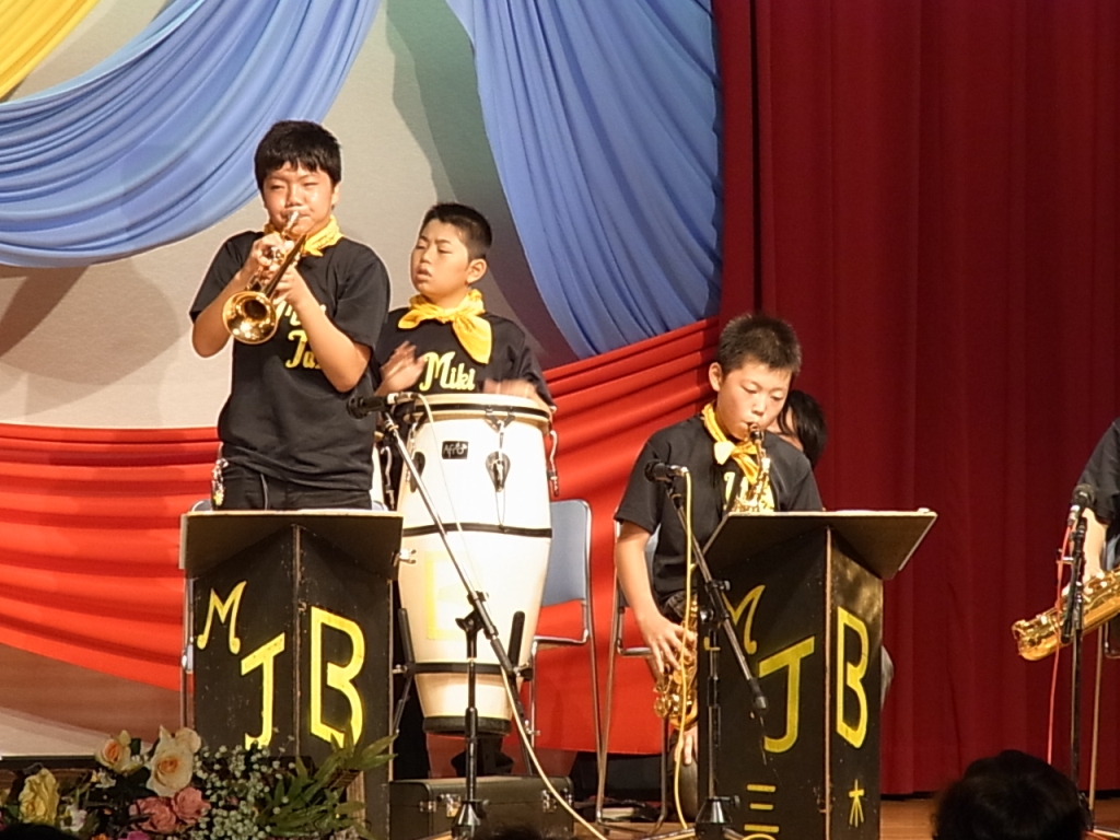 文化祭には学年の出し物のほかに、3~6年生の習字の作品や、1~6年生が図工で作ったいろんな作品が展示されています。発表の後、バザーや抹茶や、品評会が開かれます。カレーを食べるところや、豚汁を食べる所もあります。あんまりjazz.JPG遅い