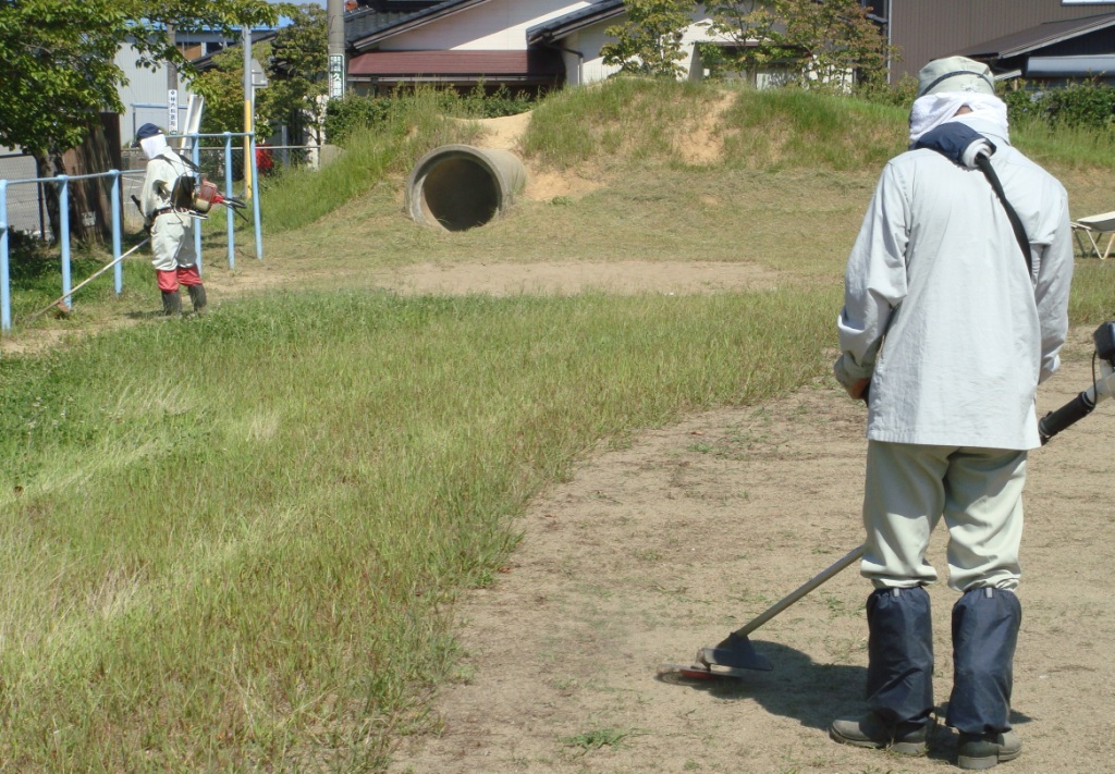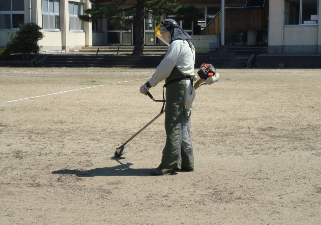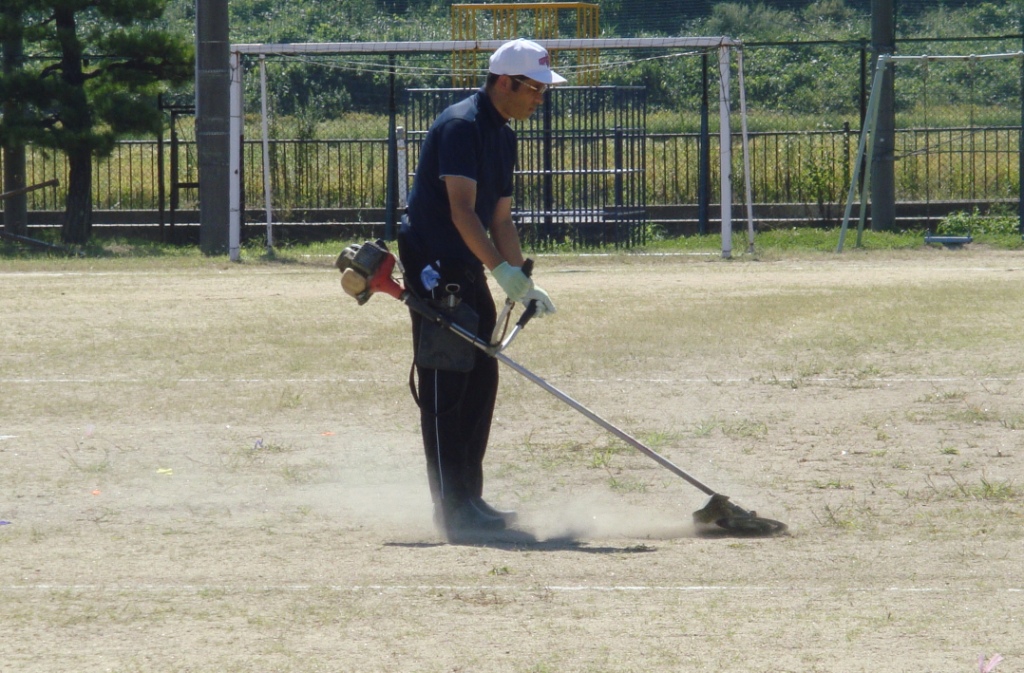 真夏日の今日、シルバー人材センターから3名の方が来て運動場の除草作業をして下さいました。教頭も授業の合間をぬって加勢し草刈り機の音が鳴り響きました。