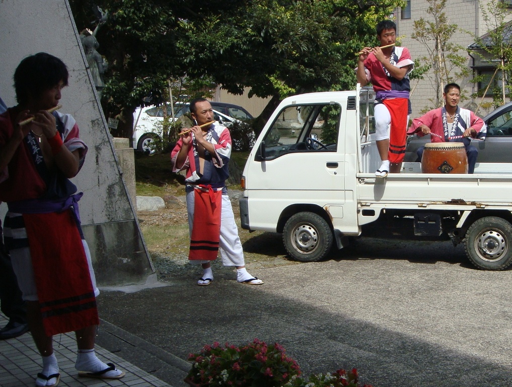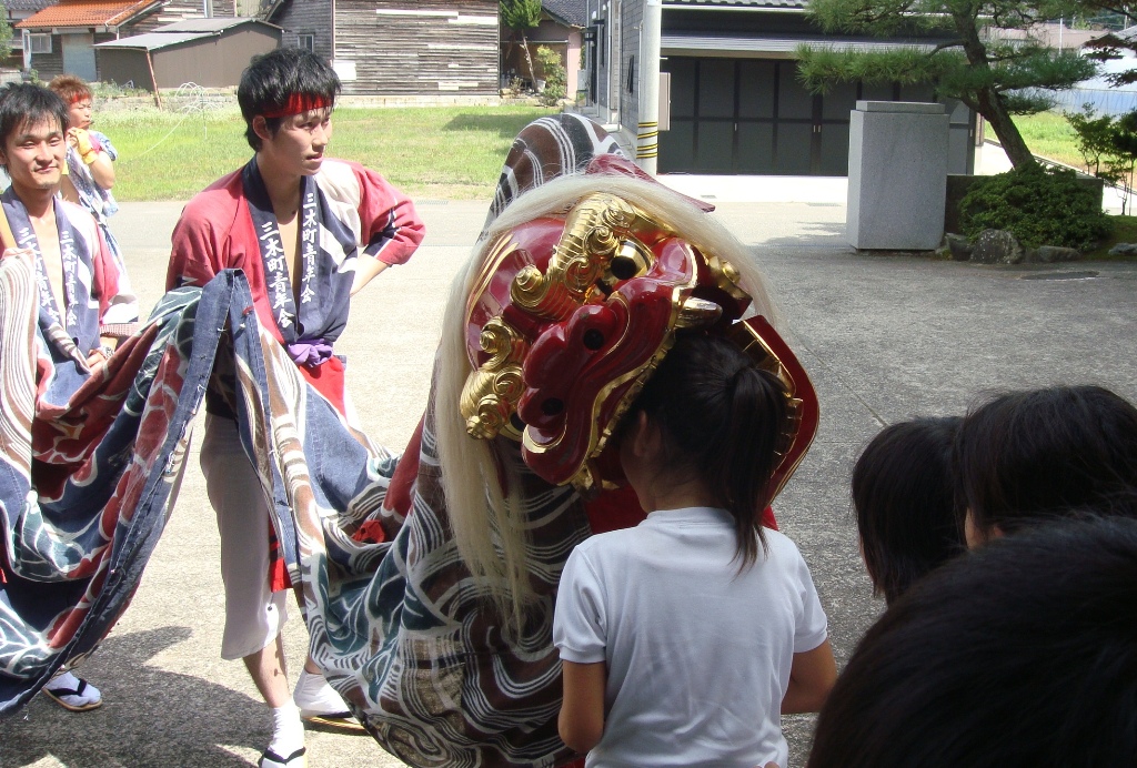 三木地区では、稲刈りが済み、各町で秋祭りのまっ最中です。今、獅子舞を見ている子どもたちが、やがて青年団として獅子舞を受け継ぐ若者になって、三木校下で社会人として残ってほしいものです。