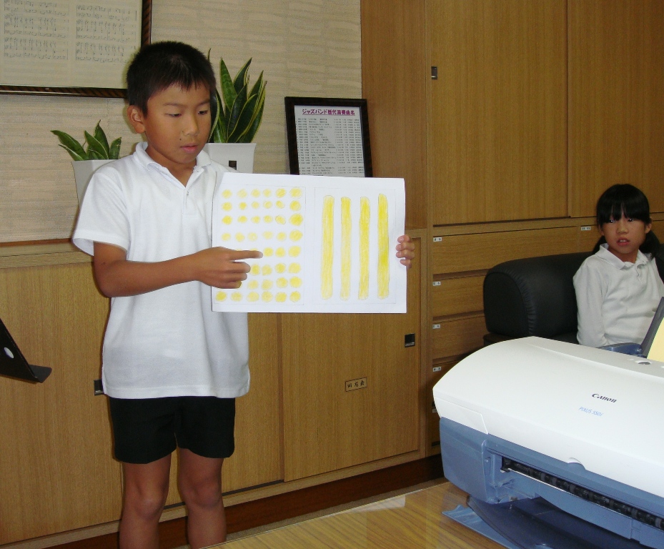 図や写真、メモをもとに、聞き手に分かりやすく伝えるよう、工夫しながら校長室へ発表に来てくれました。どの子も、緊張しながらも、まとめたことを上手に発表できました。