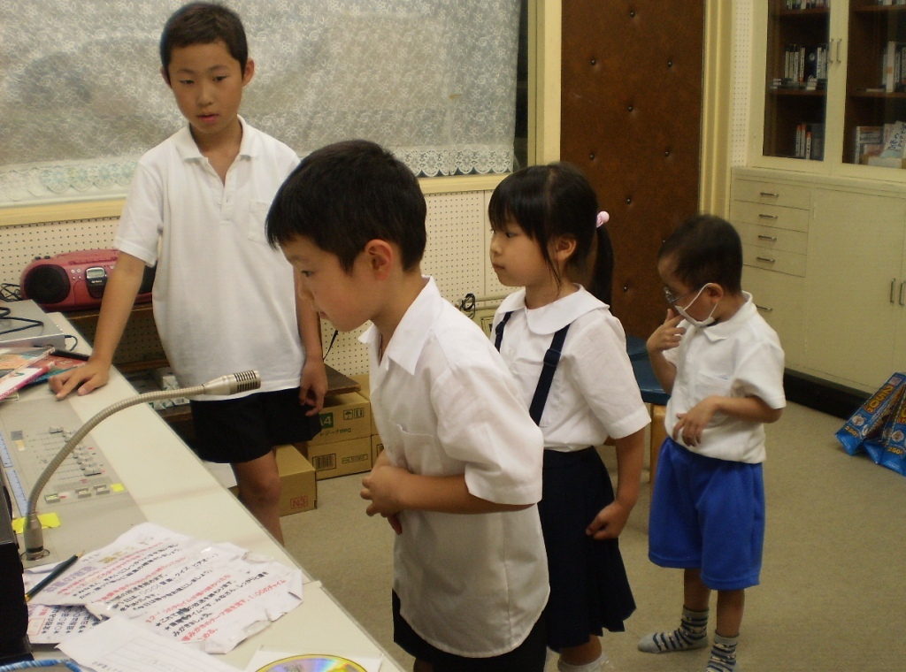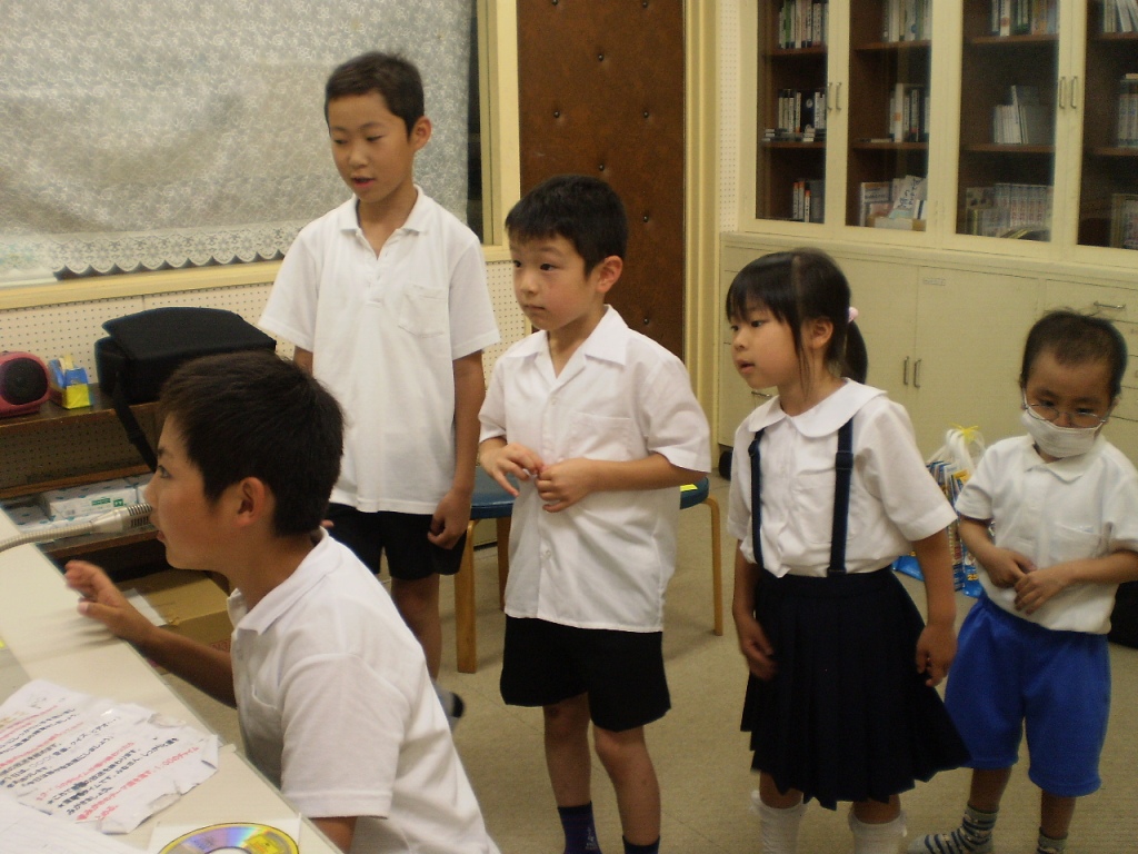 文化祭には学年の出し物のほかに、3~6年生の習字の作品や、1~6年生が図工で作ったいろんな作品が展示されています。発表の後、バザーや抹茶や、品評会が開かれます。カレーを食べるところや、豚汁を食べる所もあります。あんまり遅いと