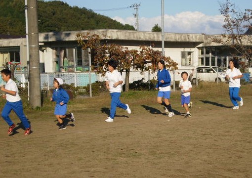 5分間で、4周から7周、運動場を走ります。