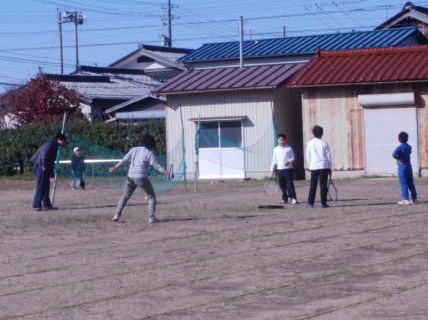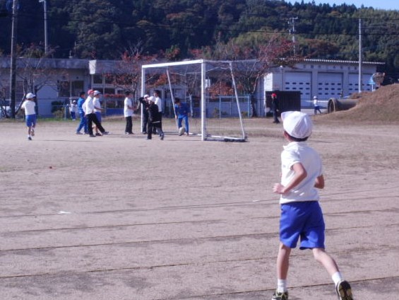 高学年のサッカーに混ぜてと急ぐ2年生   先生とテニス楽しいな