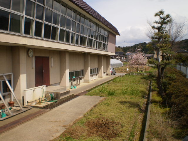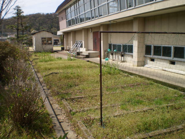 プールと体育館の間にある畑は、鉄板をかぶせて、ミキサー車などが通るため今年は野菜が植えられません。プールはなんとか入口を運動場側に確保して水泳指導ができます。