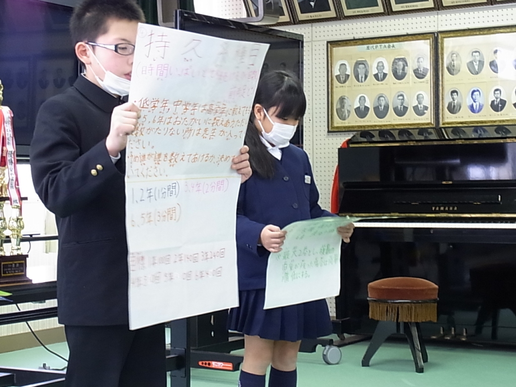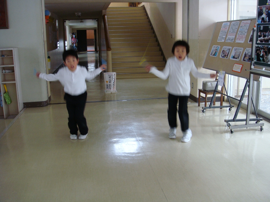 玄関で縄跳び練習する元気な2年生がいました。