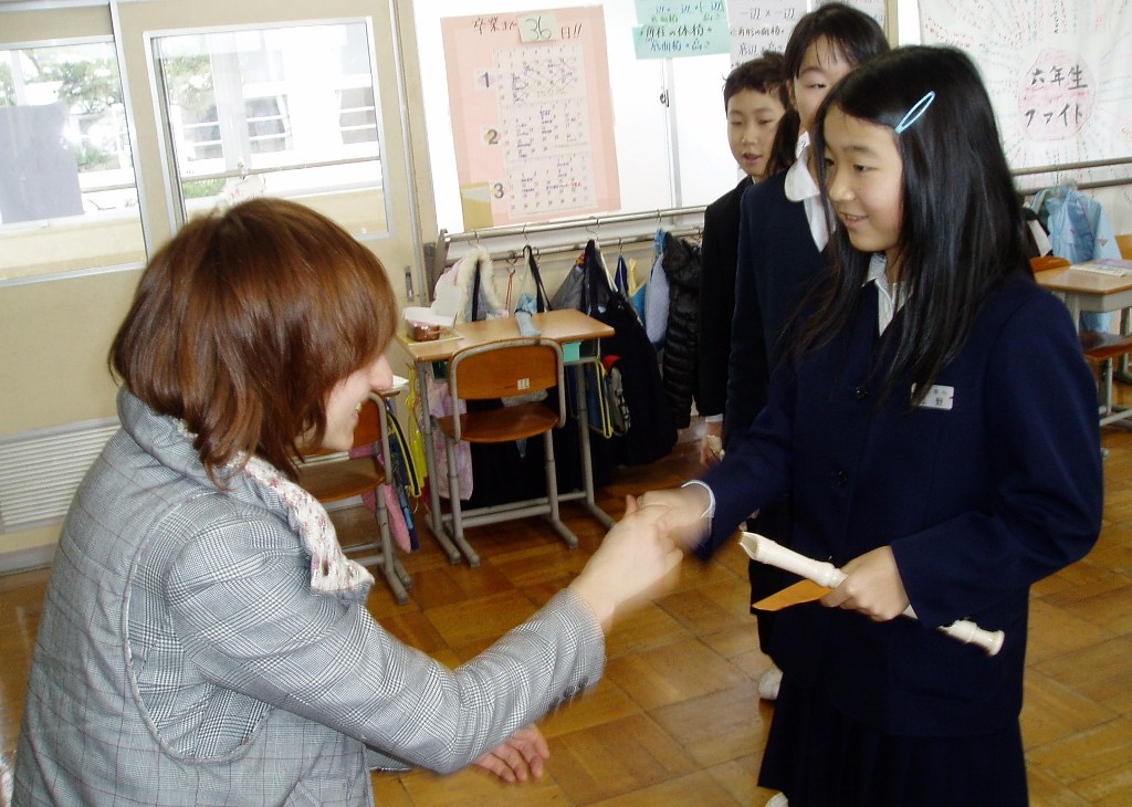 文化祭には学年の出し物のほかに、3~6年生の習字の作品や、1~6年生が図工で作ったいろんな作品が展示されています。発表の後、バザーや抹茶や、品評会が開かれます。カレーを食べるところや、豚汁を食べる所もあります。あんまり遅いと