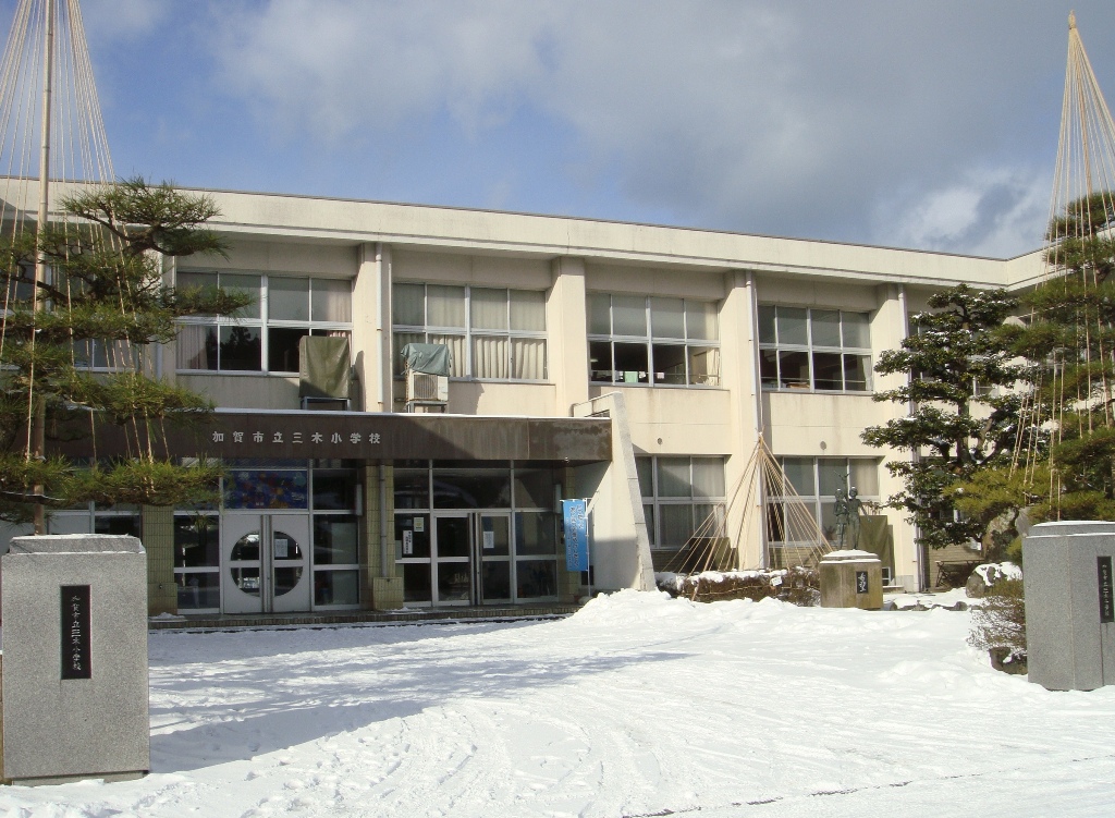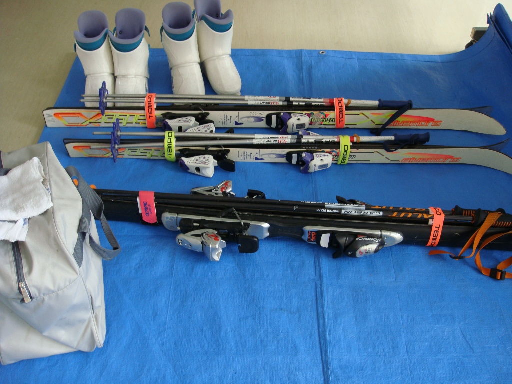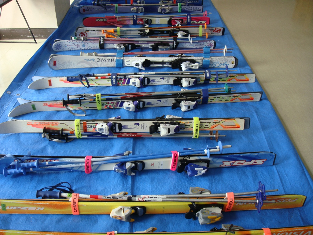 三木小学校には寄付のスキー板があります。玄関に準備してあります。
