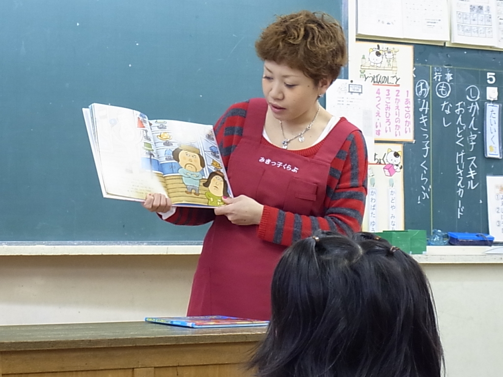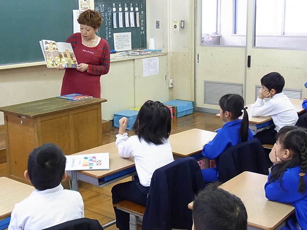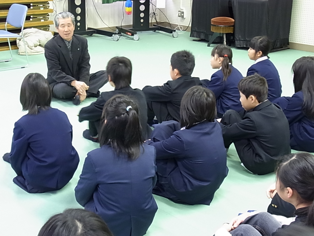 毎月ボランティア「みきっこくらぶ」の読み聞かせを子どもたちは楽しみにしています。5・6年生は、「ふるさと三木を知る会」の野崎さんに、ふるさとに伝わる昔話を方言を交えながら、語りをしてもらいました。絵はなくても、物語から自分で想像しながら熱心に聞いていました。三木小学校の児童は、お蔭さまで本や話が大好きな子に育っています。