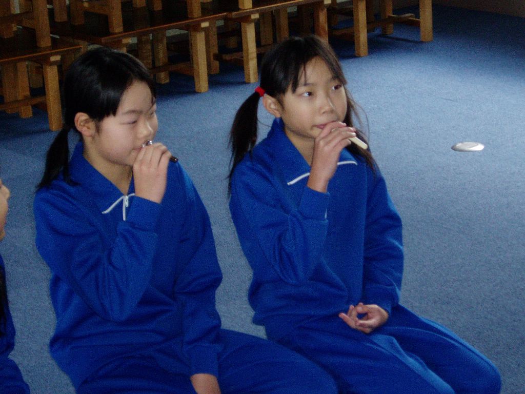5年生が三木町のTさんに、金管楽器で使うマウスピースの指導をしてもらいました。5年生は、意欲満々で練習に臨みました。