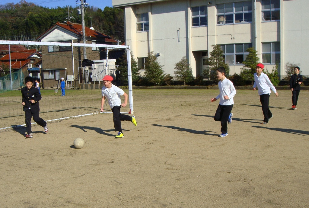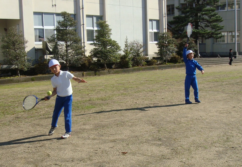 久々の好天に恵まれた昼休み、子どもたちは、運動場に飛び出し、ブランコ、築山、砂場、サッカー、テニス、竹馬、一輪車と友達と思い切り遊んでいました。「校長先生、テニス出来ますか?」と2年生に誘われラケットを持ち楽しみました。冬とは思えない爽やかな休み時間でした。チャイムが鳴ると一斉に校舎へ駆け込み、掃除に精を出す三木の子でした。