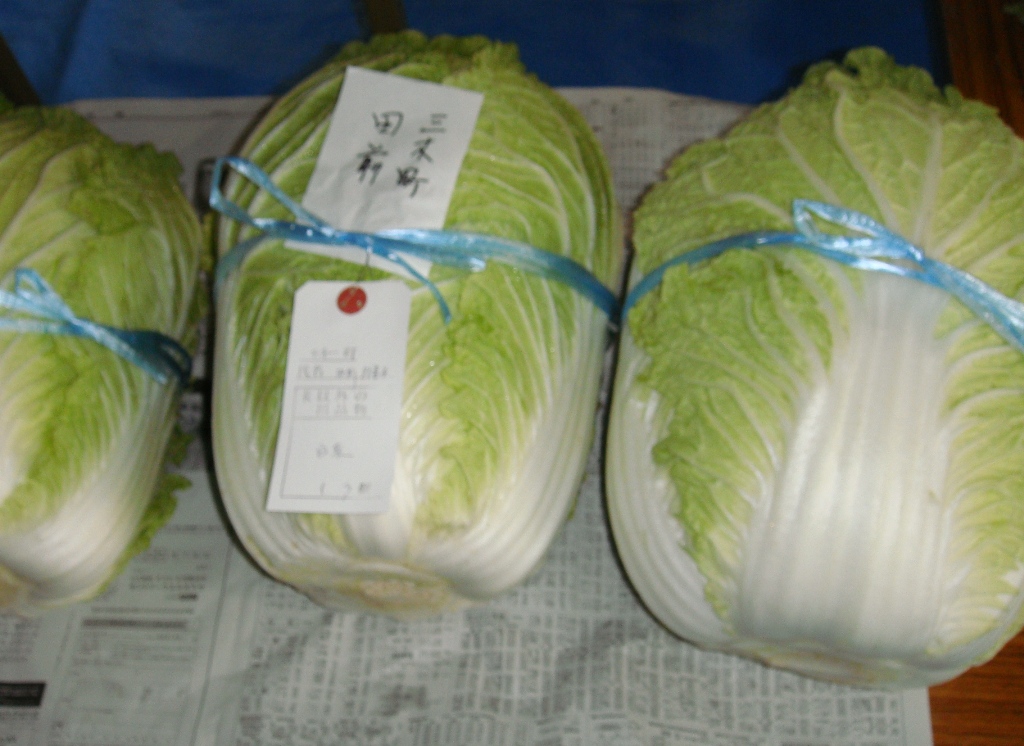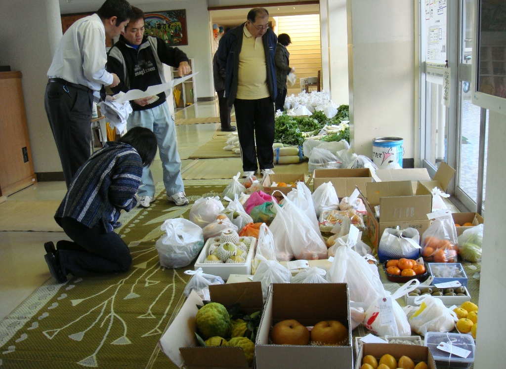 早朝から、学校に三木地区でとれた野菜や果物が次々と役員さん方によって運ばれてきました。お世話様です。見事な野菜や果物に、子ども達も職員も驚いています。午後から、品評会の審査をして、明日は競売にかけます。