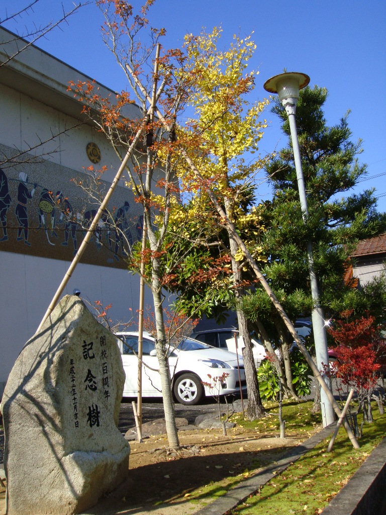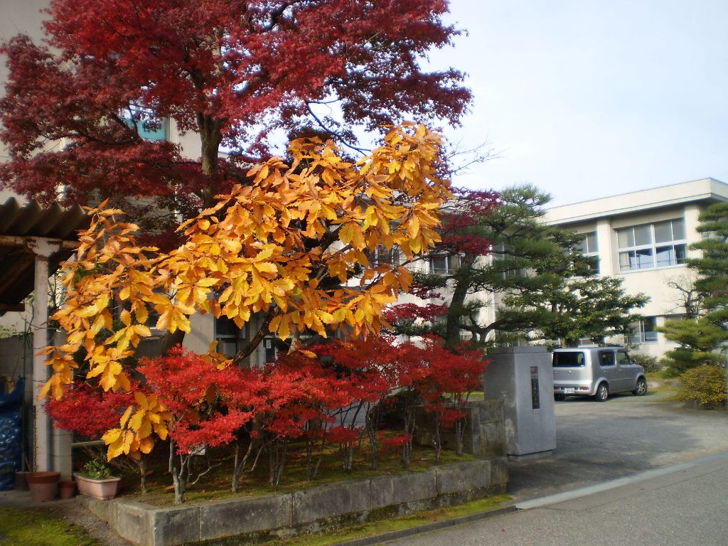 学校前の木が朝晩の冷え込みと共に今年も美しく色づきました。