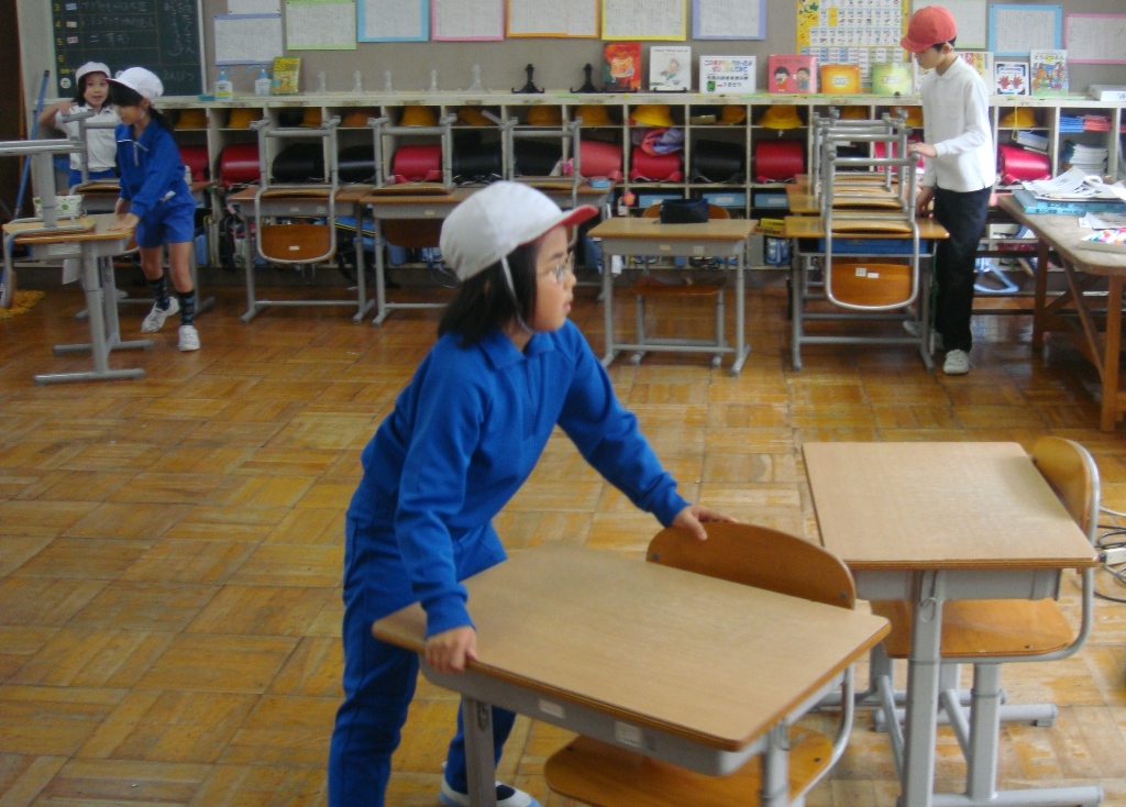 机や椅子は、高さが調節できるものを1年生から6年間使用します。普通の机よりちょっと重いことが難点ですが、自分の机を大事に使います。
