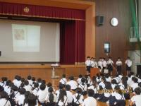 平和集会が行われ、企画委員会の読み聞かせを聴きながら、全校で「平和ってどんなことか?」を考えました。