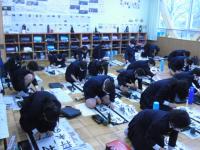 今日は始業式の後、3、4限目は書き初めの会がありました。