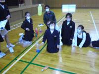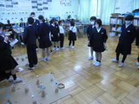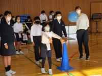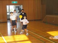 昼休み、たてわり班ごとにシャトルボールに挑戦しました。