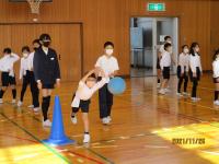 違う学年の子が取りやすいボールをくふうしながら投げ、