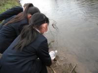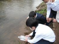 20日くらいたって、少し大きくなったので、今日の昼休み、熊田川に2年生の子10人と放流しに行きました。