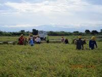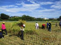 春に植えた稲が大きく実り、稲刈りをしました。