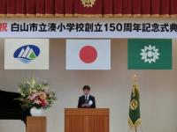 10月21日(土)白山市長田村敏和様をはじめ、多数のご来賓の皆様、そして本校の発展に寄与された地域の方々、歴代の校長・教頭先生をお迎えし「創立150周年記念式典」を執り行いました。ご尽力いただいた実行委員会をはじめ保護者の皆様のおかげで、150周年という大切な節目を皆でお祝いすることが出来ました。