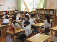 たてわり班ごとに高学年の子が絵本を低学年の子に読み聞かせをする、というものです。