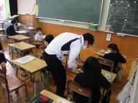 朝学習の時間に6年生に出題しに行きました。