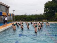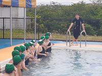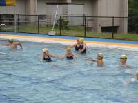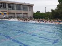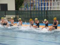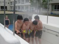 プール開きを終えて今日、そうじを行った5,6年生がプールに入りました。