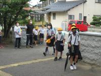 学校は3年生が玄関先であいさつを育友会の方たちとしました。
