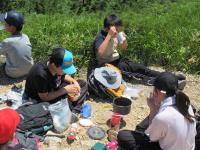 登山の際のお湯をわかすコンロの付け方などを学びました。