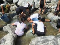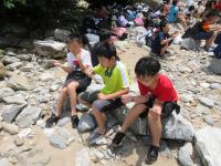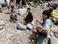 みんながじぶんたちでつかんだいわなをさばき、食べることができました。