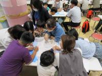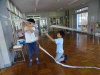 広いワークスペースを使って、紙を細長く破いたり切ったりし、どんどんつないでいきました。