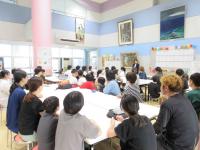 普段どのようなメニューを考えて作っているのかというお話を共同調理場の栄養士さんから説明を受けました。