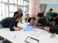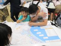 と題し、地区別グループになって、ハザードマップで自宅場所と避難経路を確認しました。