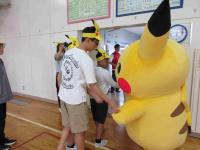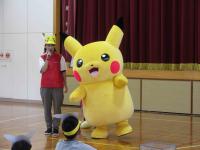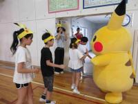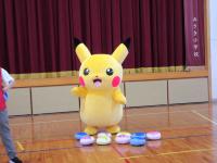 ピカチュウのお面をかぶって、体を動かすゲームをして、みんなニコニコ!